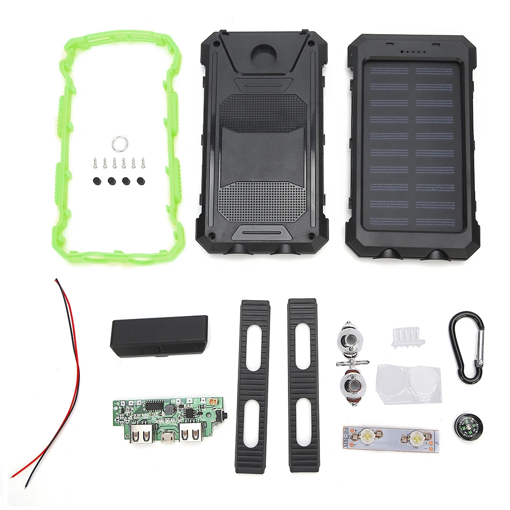 This is a DIY kit of portable solar powerbank, which allows fast and safe charge for mobile phones. It can effectivelyconvert the solar energy into electric energy and store in battery for all-dayuse. IP6 waterproof design, fully protects your devices. Equipped with acompass, suitable for sport, travel, and other outdoor activities.