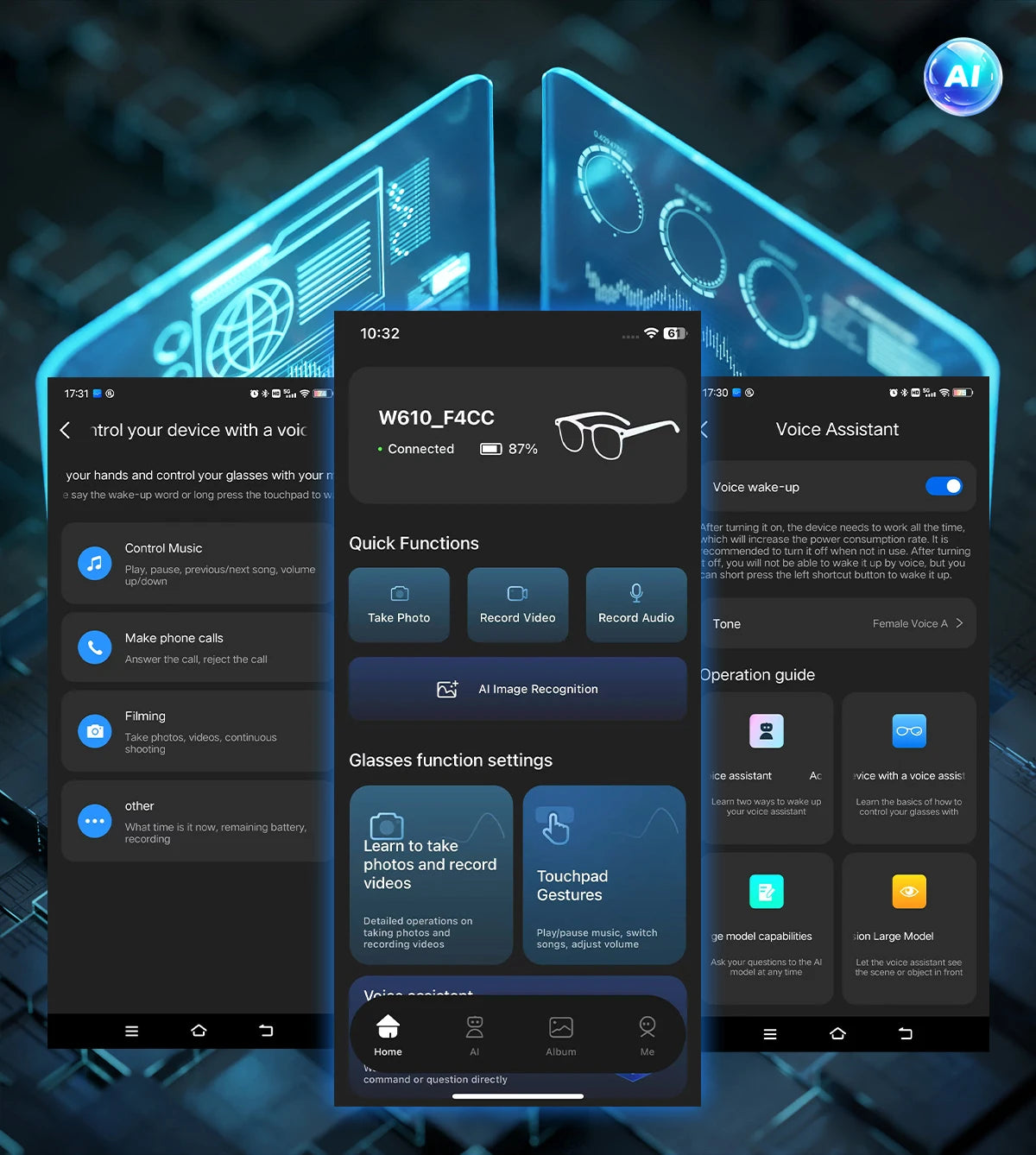 Function: Music,Camera,VIDEO,Voice Assistant,calling,Anti-blue light,AI translator