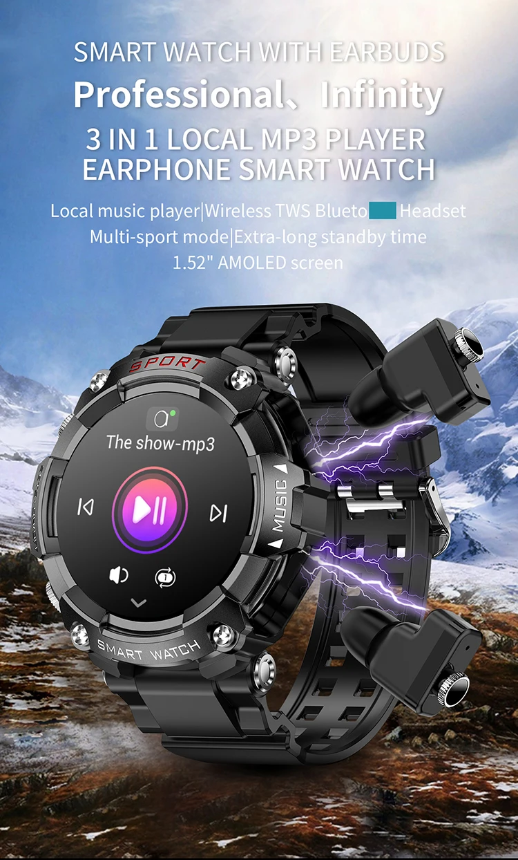T96 Smart Watch with Earphones BT Call Music Headset Player t96 Heart rate Sleep monitor smart watch with earbuds 2 in 1